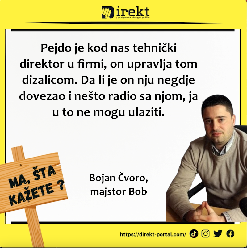 “Pejdo je kod nas tehnički direktor u firmi, on upravlja tom dizalicom, da li je on nju negdje dovezao i nešto radio sa njom, ja…