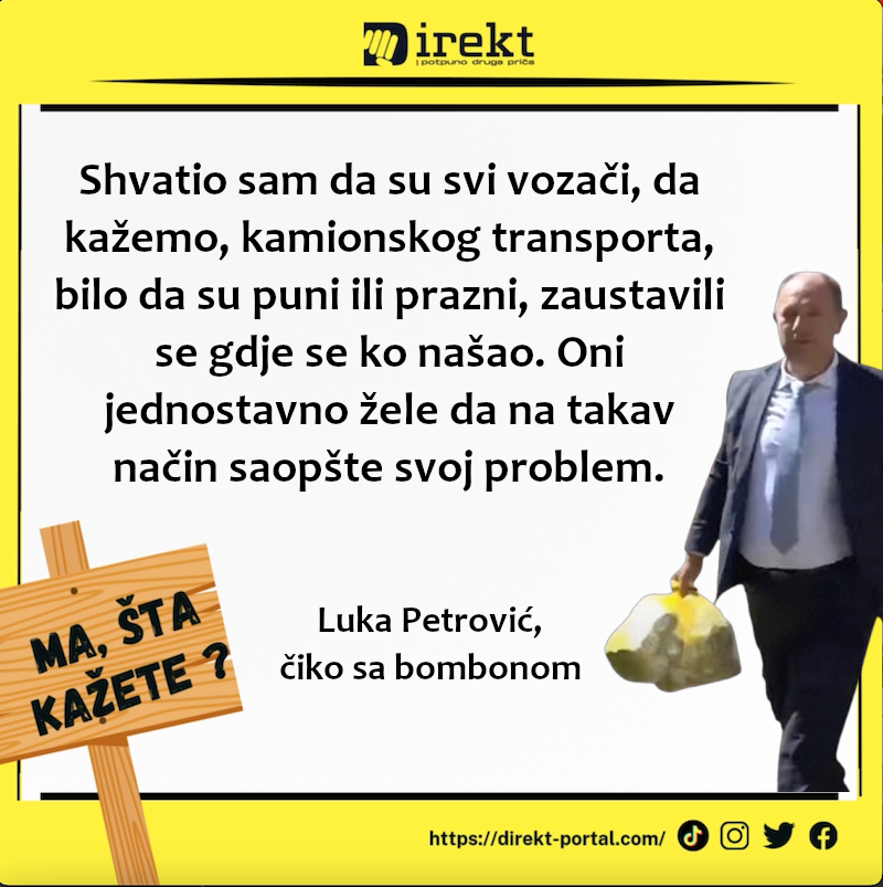 "Shvatio sam da su svi vozači, da kažemo, kamionskog transporta, bilo da su puni ili prazni, zaustavili se gdje se ko našao. Oni jednostavno žele…