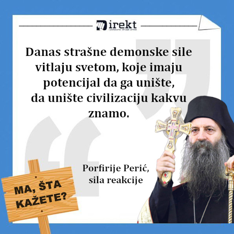 Danas strašne demonske sile i oluje vitlaju svetom, sile koje imaju potencijal da ga unište, da unište civilizaciju kakvu znamo, da te sile na velika i neprestana iskušenja, svakovrsnim pretnjama i pritiscima, stavljaju i naš pravoslavni srpski narod- rekao je patrijarh Porfirije povodom Spasovdana, slave Grada Beograda.