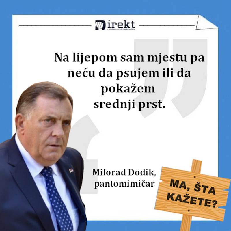 -Američka ambasada sa domaćim žbirovima želi da  potkopa značajan dio ekonomije. Amerika sankcionše dva medija, jer kao šire neku priču. Na lijepom sam mjestu pa neću da psujem ili da pokažem srednji prst- rekao je Milorad Dodik komentarišuće novi paket sankcija SAD prema firmama koje su povezali sa Predsjednikom RS.