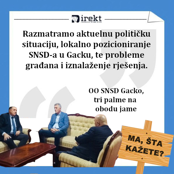 Na sastanku je razmatrana aktuelna politička situacija, lokalno pozicioniranje SNSD-a u Gacku, te problemi građana i iznalaženje rješenja, saopštili su iz Opštinskog odbora SNSD-a u Gacku.