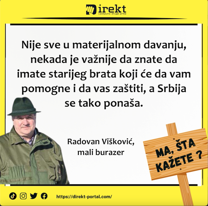 “Nije sve u materijalnom davanju. Nekada je važnije da znate da imate starijeg brata koji će da vam pomogne i da vas zaštiti, a Srbija se tako ponaša”, rekao je Radovan Višković, premijer RS.