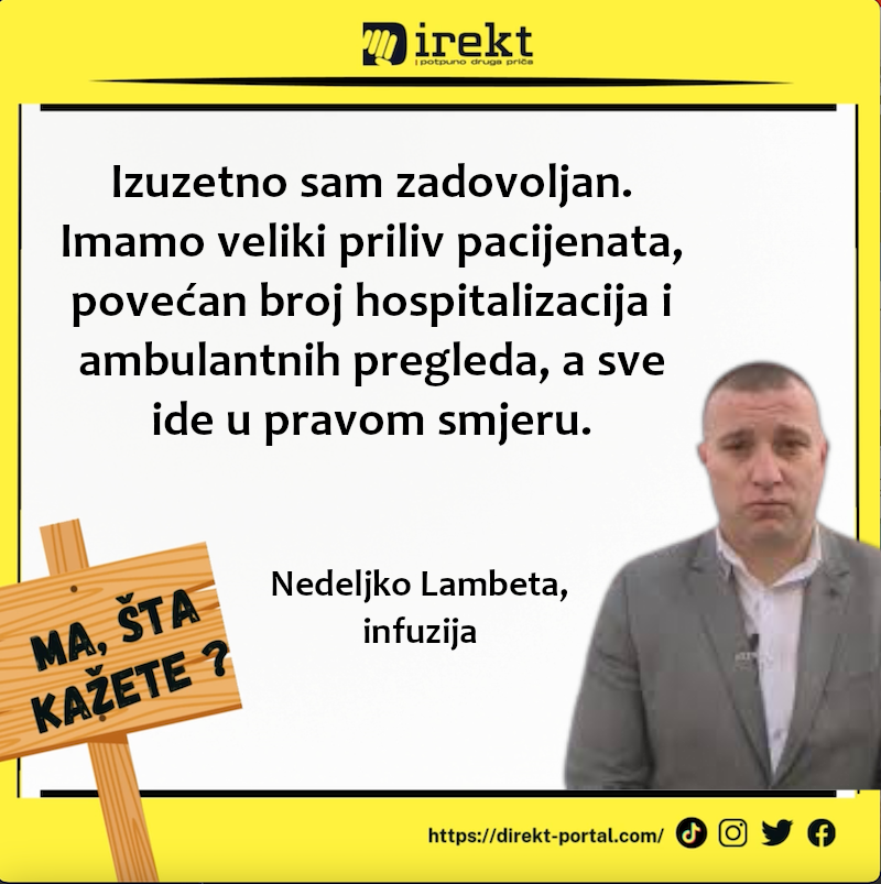 Sva odjeljenja i službe sada su pod jednim krovom, što značajno olakšava rad i pristup pacijentima. Izuzetno sam zadovoljan. Imamo veliki priliv pacijenata, povećan broj hospitalizacija i ambulantnih pregleda , a sve ide u pravom smjeru“, naglasio je Nedeljko Lambeta, direktor JZU Bolnica “Sveti arhiđakon Stefan- 9 januar” u Trebinju.