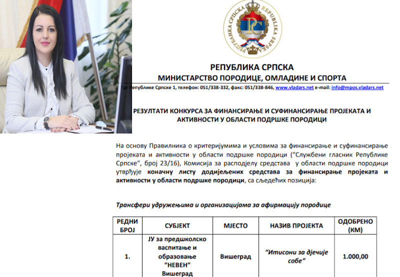 Ministarstvo porodice, omladine i sporta u Vladi Republike Srpske je u periodu od 24.08. do 14.09.2020. godine raspisalo konkurs za (su)finansiranje omladinskih programa i projekata, na osnovu člana 14. st. 3. i 4. Zakona o izvršenju budžeta Republike Srpske za 2020. godinu, da bi objavom rezultata konkursa došlo do brojnih nepravilnosti.