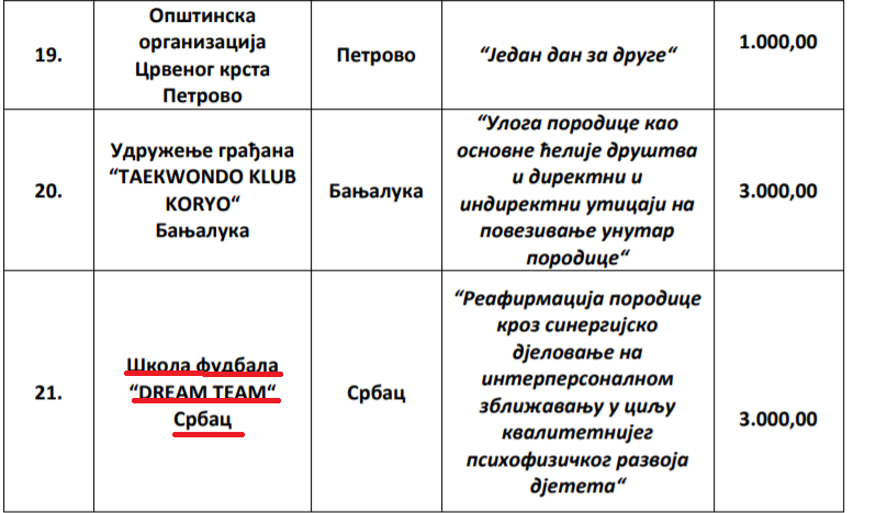 Pored ovoga, nije nam bilo teško da “bacimo oko” na spisak onih čiji projekti su dobili novac od Ministarstva. Među njima su i Škola fudbala “Dream Team” Dražena Dragosavljevića, čiji je stric bivši ministar ovog resora Proko Dragosavljević.