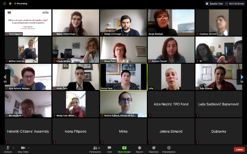 Organizacija „Prava za sve“ je uz podršku fondacije „Kvinna Till Kvinna“ online diskusiju „BiH je u Evropi, a kada ćemo u EU?“ o procesu pristupanja Bosne i Hercegovine Evropskoj uniji iz ugla civilnog društva i ženskih perspektiva. U diskusiji su učestvovali predstavnici Evropske unije u BiH, organizacije civilnog društva, državne institucije, političke organizacije i ambasade.