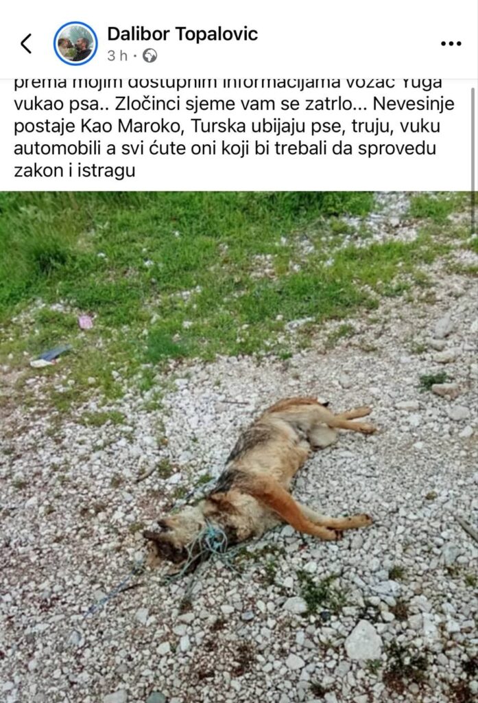 Pas, opisan kao križanac svijetlosmeđe boje, podlegao je povredama, a njegovo tijelo ostavljeno je pored puta. Prema dojavi, postoji osnovana sumnja da je smrt nastupila usljed davljenja.