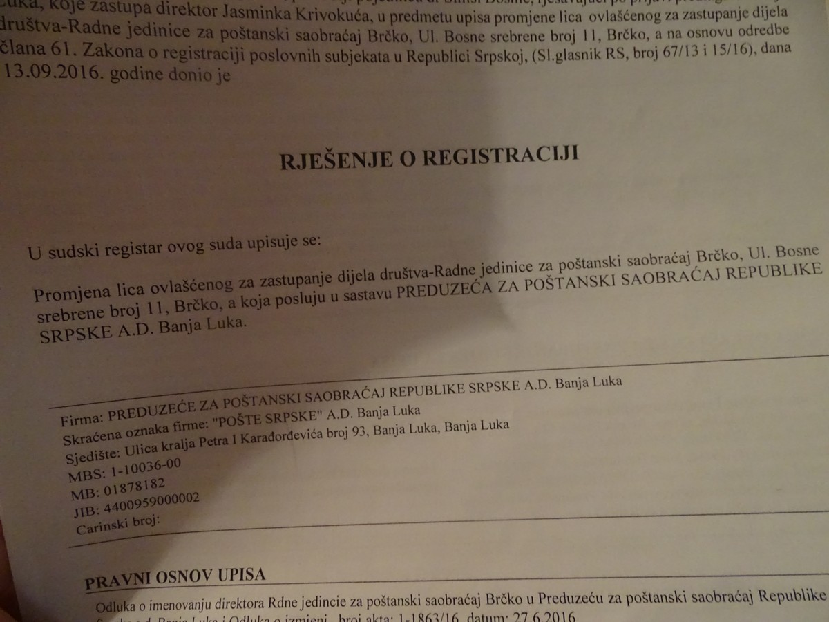 Direktorica „Pošta“ Jasminka Krivokuća pravdala se da rukovodioce radnih jedinica ne imenuje uprava, već Nadzorni odbor preduzeća. Odbor je, kako je rekla, smijenio prethodnog direktora zbog „bolje organizacije procesa rada“ i na njegovo mjesto imenovao Đokića.