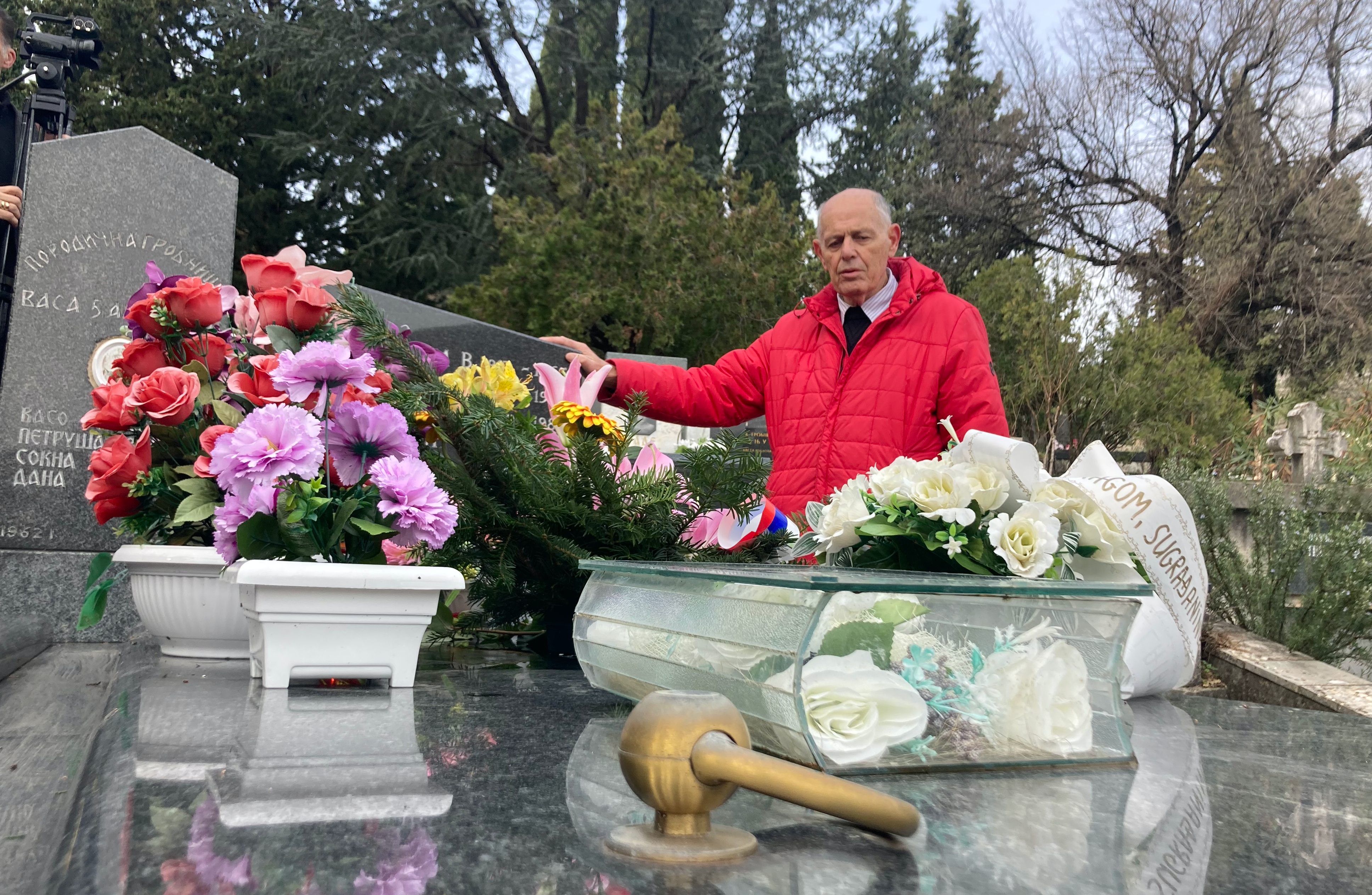 Srđanov otac Rade priča polako i polaže cvijeće na sinov grob. Suza nema.