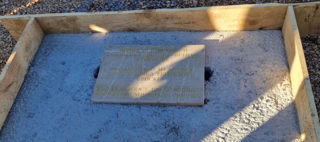 Zanimljivo je i da na samom kamenu temeljcu piše – Uz zahvalnost predsjedniku Republike Miloradu Dodiku. Iako je Dodik priznao presudu Suda BiH i odstupio sa mjesta predsjednika Srpske prenijevši ovlaštenja na v.d. predsjednicu Anu Trišić Babić, hercegovački načelnici i direktori javnih preduzeća, pa ni sam premijer, ne prihvataju Dodikovu odluku i u svakoj prilici ga oslovljavaju kao predsjednika Republike Srpske. Dodik je u Hercegovinu doletio helikopterom uz standardnu policijsku pratnju.