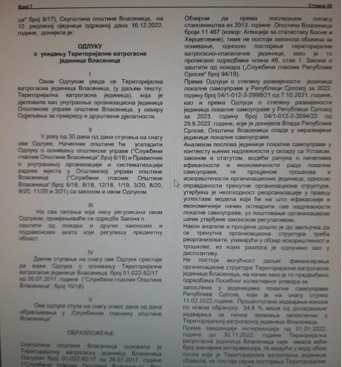 No, to nije sve. Nakon što je početkom 2023. godine SO Vlasenica na prijedlog načelnika Miroslava Kraljevića ukinula Vatrogasnu jedinicu, a zaposlene podvela pod status neraspoređenih, neposlušni vatrogasci su vrlo brzo dobili otkaze. Vatrogasnu djelatnost prepuštena je komunalnom preduzeću.