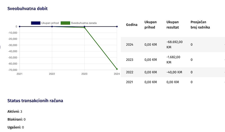 Prema zvaničnom registru poslovnih subjekata firmu je 2021. osnovao Veljko Vukelić, nema zaposlenih, ali trenutno ima tri vlasnika- Dragana Čigoju, Dragomira Menićanina i Hui Čena koji je i direktor. Od pokretanja firma nema prihoda niti zabeležene poslovne aktivnosti. U 2023. godini je imala oko 1,7 hiljada maraka rashoda, dok je 2024. godini je bila u minusu od 68,7 hiljada maraka.