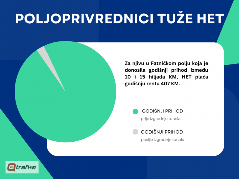 Samo nekim od vlasnika zemljišta, kaže on, isplaćuje se nepravična nadoknada na godišnjem nivou koja se obračunava na ime gubitka prikupljanja sijena, a u pitanju su plodne oranice koje je HET svojim radovima učinili neplodnim.