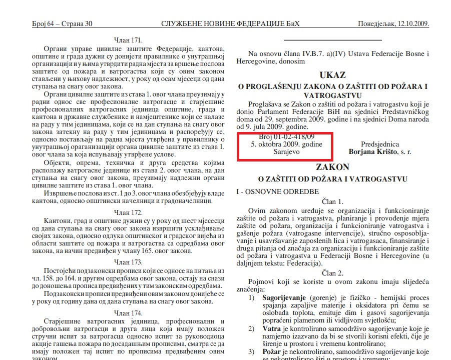 Voloder se u svojoj argumentaciji poziva na Zakon o zaštiti od požara i vatrogastvu FBiH koji je stupio na snagu u oktobru 2009. godine, dakle prije nešto više od 13 godina! Također, poziva se i na Uredbu o tehničkim svojstvima koje građevine moraju zadovoljavati u pogledu sigurnosti te načinu korištenja i održavanja građevina. Ova uredba datira još iz 2007. godine!