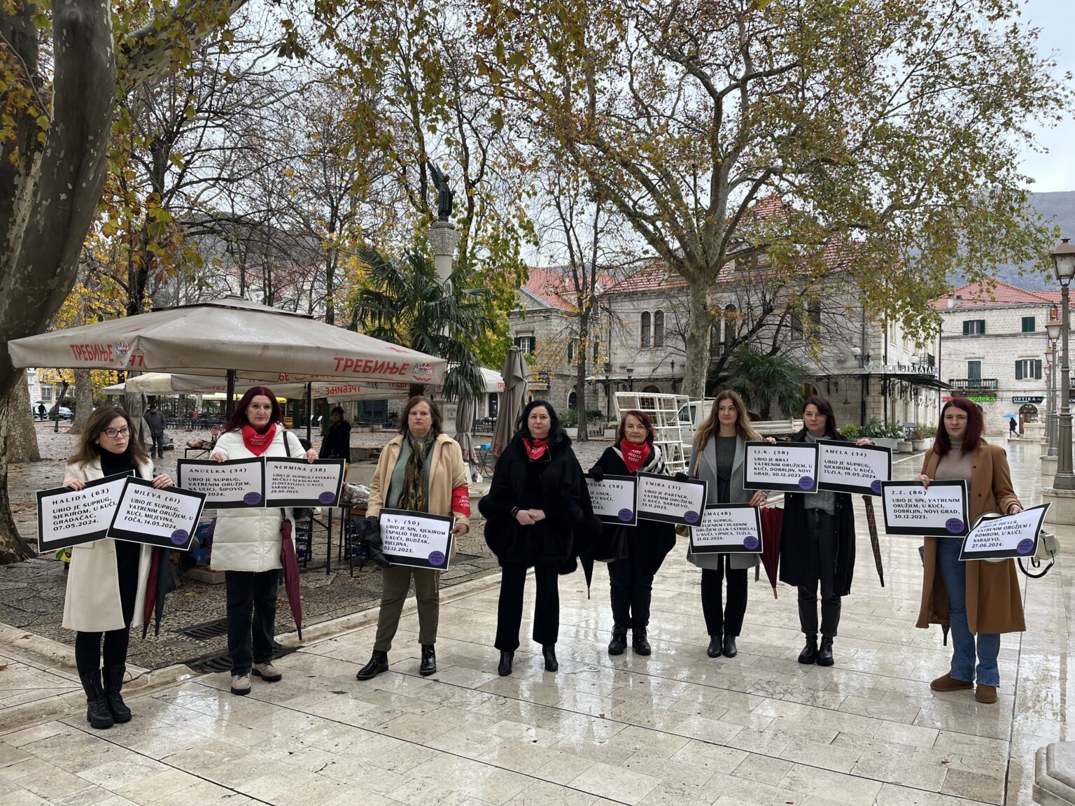 Mirno okupljanje sa porukom „Niti jedna više“, koju su članice Ženskog centra Trebinje poslale institucijama i svim pojedincima zbog sve pristutnijeg femicida, održane su danas na Trgu Slobode u Trebinju.