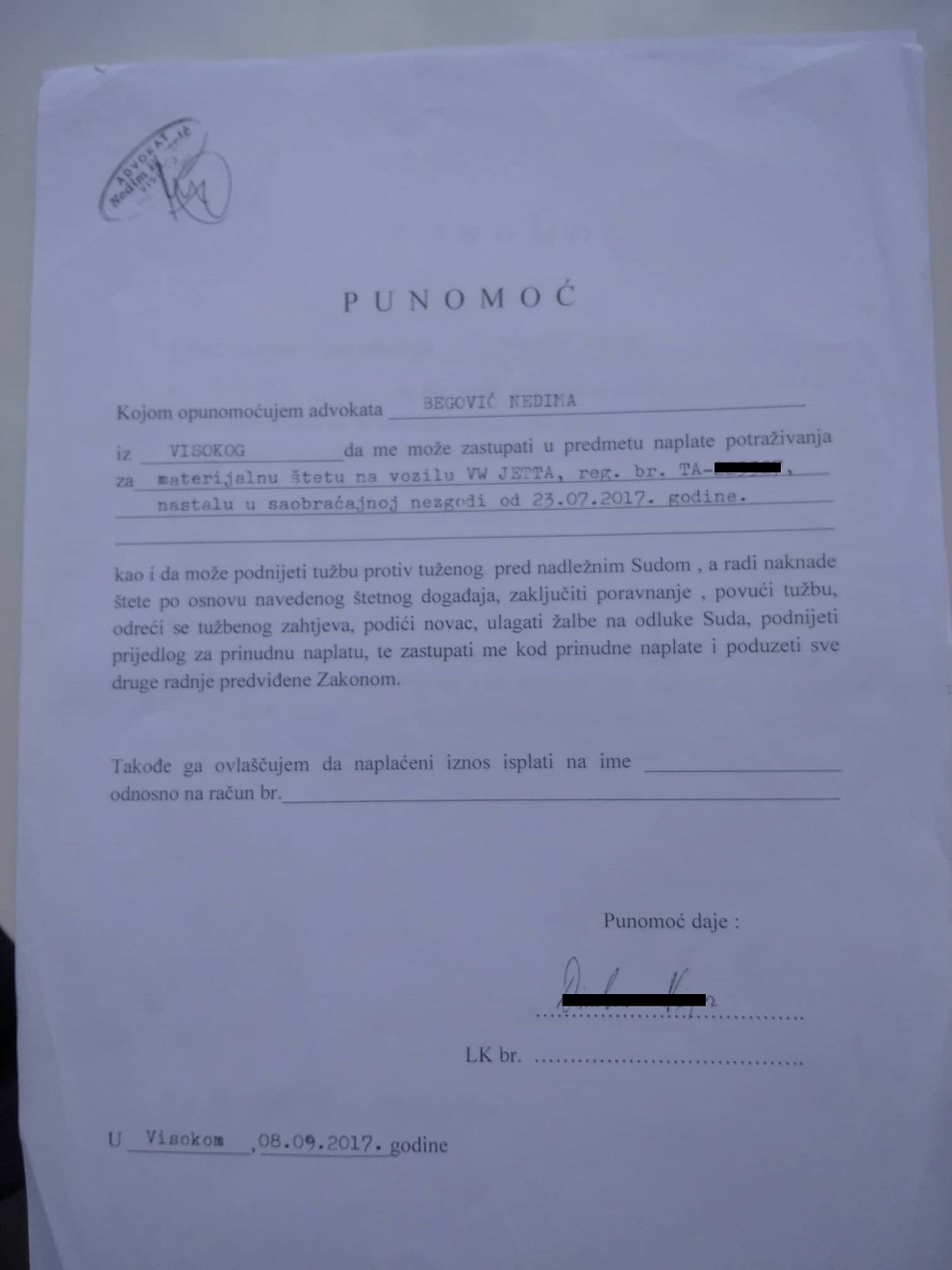 Advokat Begović nam je rekao da je bio lično sa njim kad je potpisao punomoć i da nije istina da je potpisao blanko dokument.